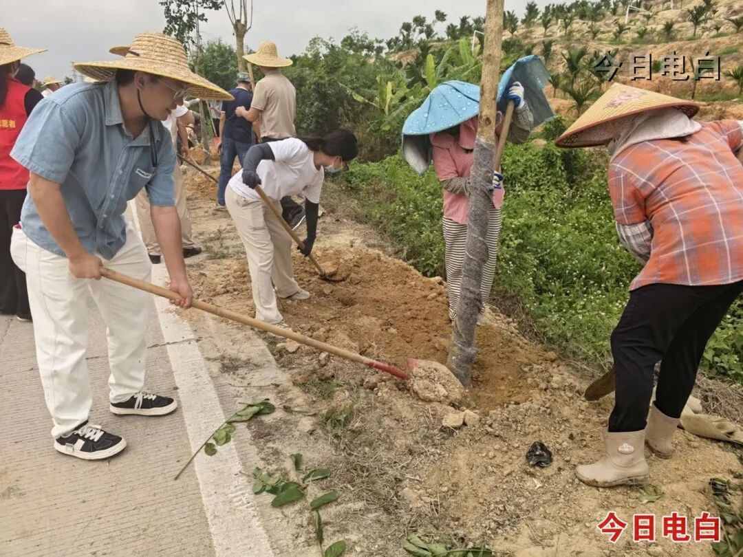 电白区委常委、统战部部长、旦场镇党委书记吴茂牵头组织,分三个点位小组,由旦场镇领导班子及旦场商会成员,旦场社区居委会,旦河、白腊塘村“两委”干部、村民群众等代表共同参与活动。积极响应绿美广东生态建设号召,携手推动典型镇绿色生态建设,推进乡村振兴高质量发展,共同以实干兴邦投身于“绿美绘新篇”实践中,以实际行动打造宜居宜业新旦场。