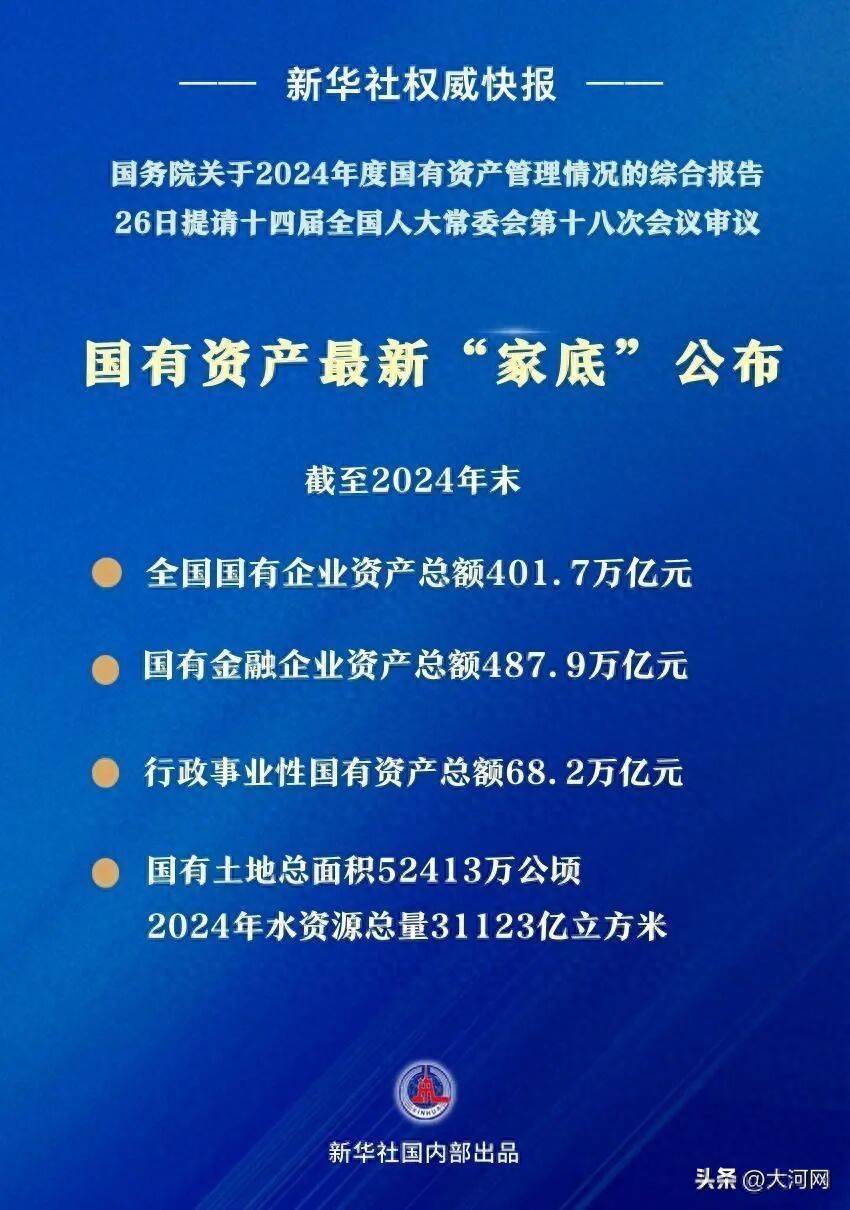 10月26日,国务院关于2024年度国有资产管理情况的综合报告提请十四届全国人大常委会第十八次会议审议联丰优配 ,国有资产最新“家底”公布。