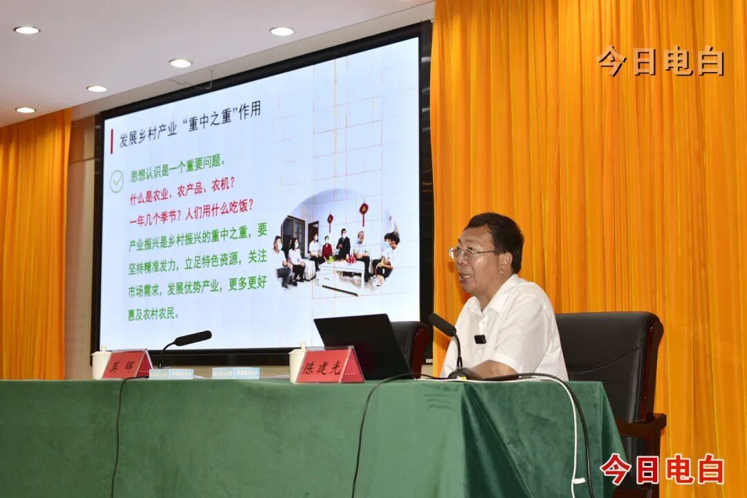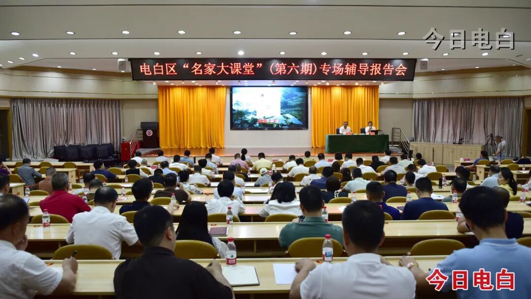 4月14日下午,电白区第六期“名家大课堂”专题辅导会在区委小会堂举行。此次活动旨在深入贯彻落实中央、省、市关于全面推进乡村振兴、加快乡村产业高质量发展的决策部署,精准把握乡村产业融合发展新趋势、新路径,助力“百千万工程”走深走实。活动邀请农业农村部农村产业融合发展专家陈建光作专题辅导报告。区四套领导班子成员,各镇(街道)、区委各部委办、区直各单位、省和市驻区相关单位负责人参加会议,会议由区委副书记莫晖主持。
